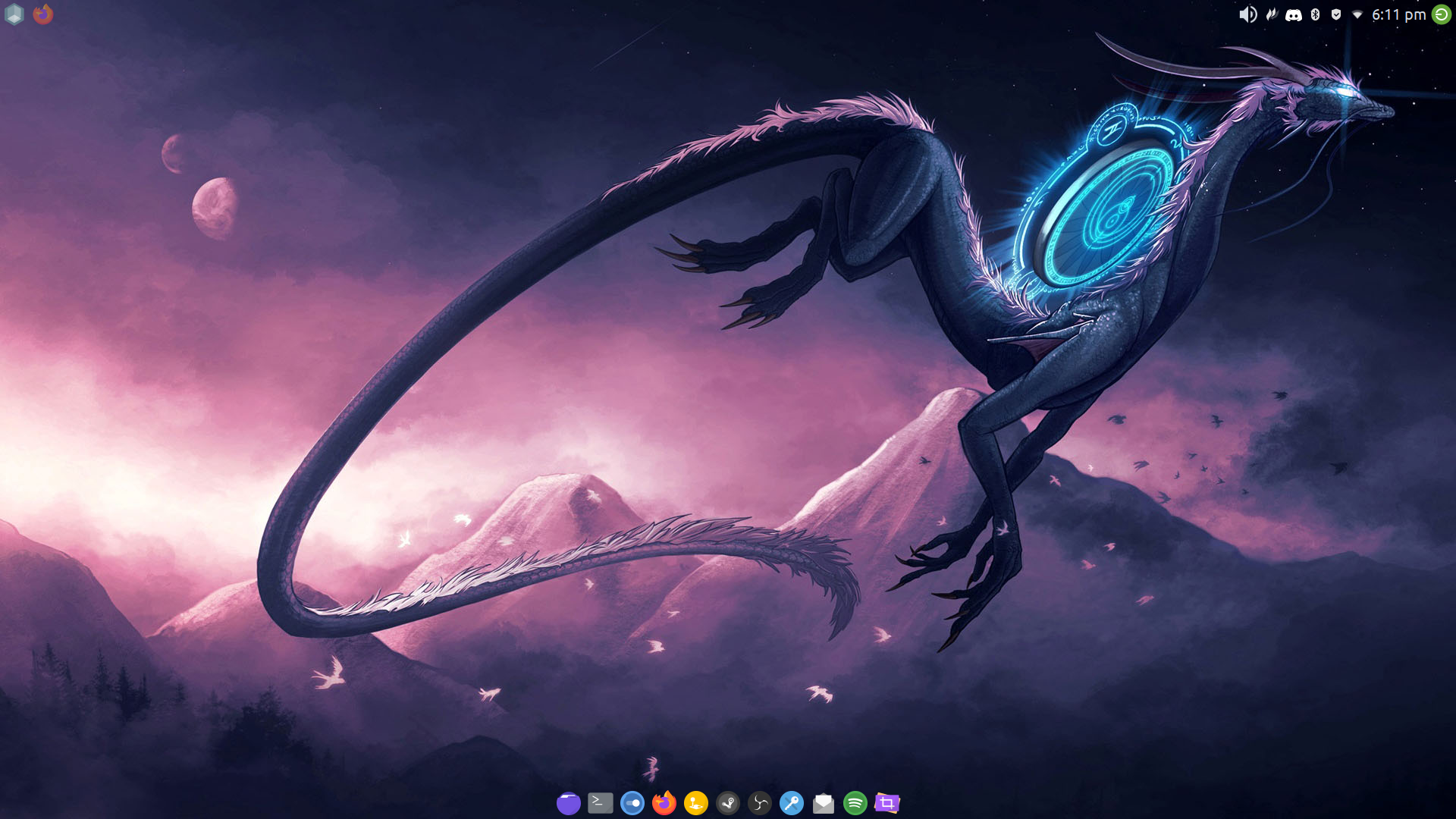 A cube icon rests on the top left corner to bring up a list of the installed applications. Running applications will have an icon next to this. System icons, such as Wi-Fi, Bluetooth, and sound are displayed on the top-right. A third panel stretches across the bottom that resembles a similar layout to Mac OS and Plank. It’s pretty nice; I haven’t had the need to change the layout or themes at all. Using htop, I find out the system is using less than 1 GB of RAM without any other applications open. Nice!