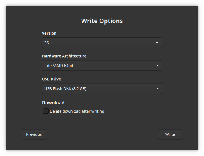 If you are using Fedora Media Writer, you can skip this step, as it will download and write the image to your USB.