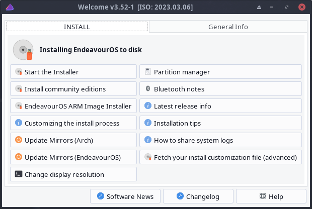 - Once you are satisfied with a distribution. Select Install, Start the installer or similar.