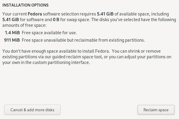 If, for some reason, it complains about the storage, one option is to manually clean the SSD, most distros come with a Partition Manager, like GParted or similar.
