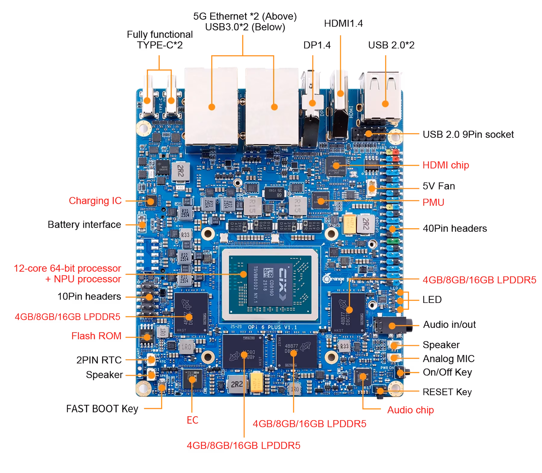 As you can see from the specs, this is no joke. 16GB RAM by default, 12-cores processor, with a powerful GPU (Immortalis G720), and a NPU that has a claimed performance up to 30 TOPS. Not just that, but there’s numerous ports on this SBC, with 2 full sized M2 2280 slots! You can tell that the IO is not going to be a joke here.
